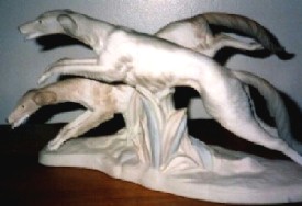 this large (just over 12" in length) Borzoi dog grouping in an antique