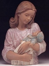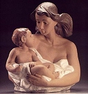 See official NAO web site Bisque porcelain (white matte) bust of a woman holding a baby.