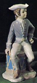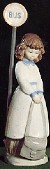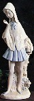 basket of yellow tulips, one tulip held in right hand. Also made as NAO. |