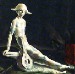 Standing adolescent Greek shepherd boy, mostly bare to waist,