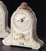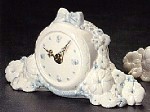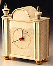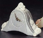 Tri-corner shaped clock with embossed ribbing on front of case and