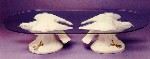 Bodies of two outward facing doves form surface of bowl |