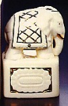Domestic elephant figural atop rectangular base |