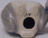 very large steam escape hole in the bottom of these pieces is also a giveaway.